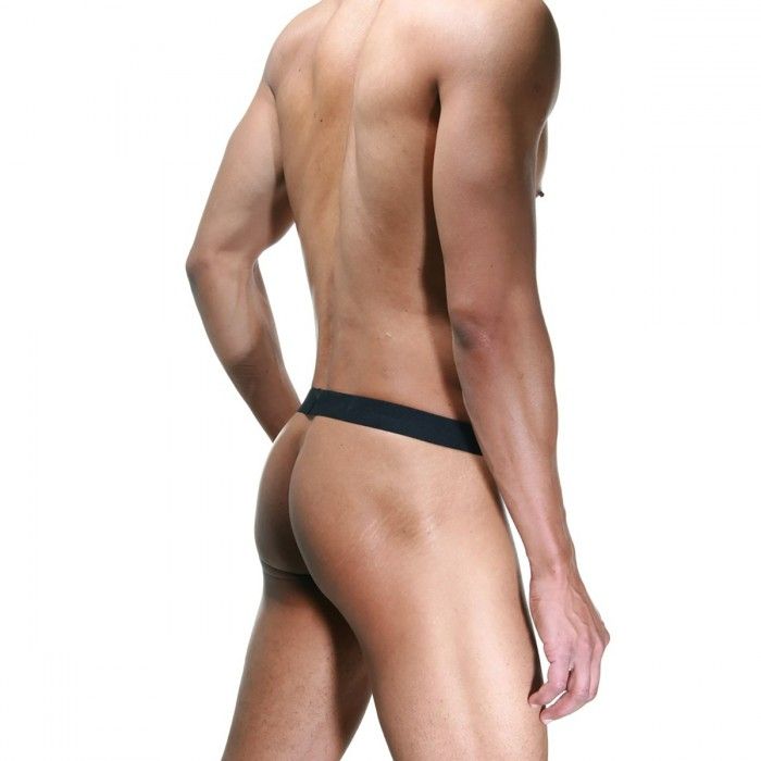 Очень откровенные трусы, на широком черном поясе, из розовых ремешков, с полностью открытыми ягодицами и гениталиями.
