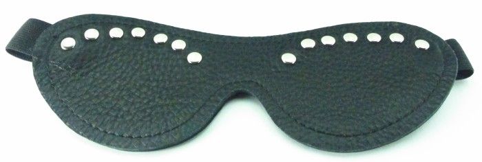 Черная маска из кожзама, декорированная заклепками. Крепится к голове при помощи удобной резинки. Длина маски - 19,5 см., ширина - 7 см.