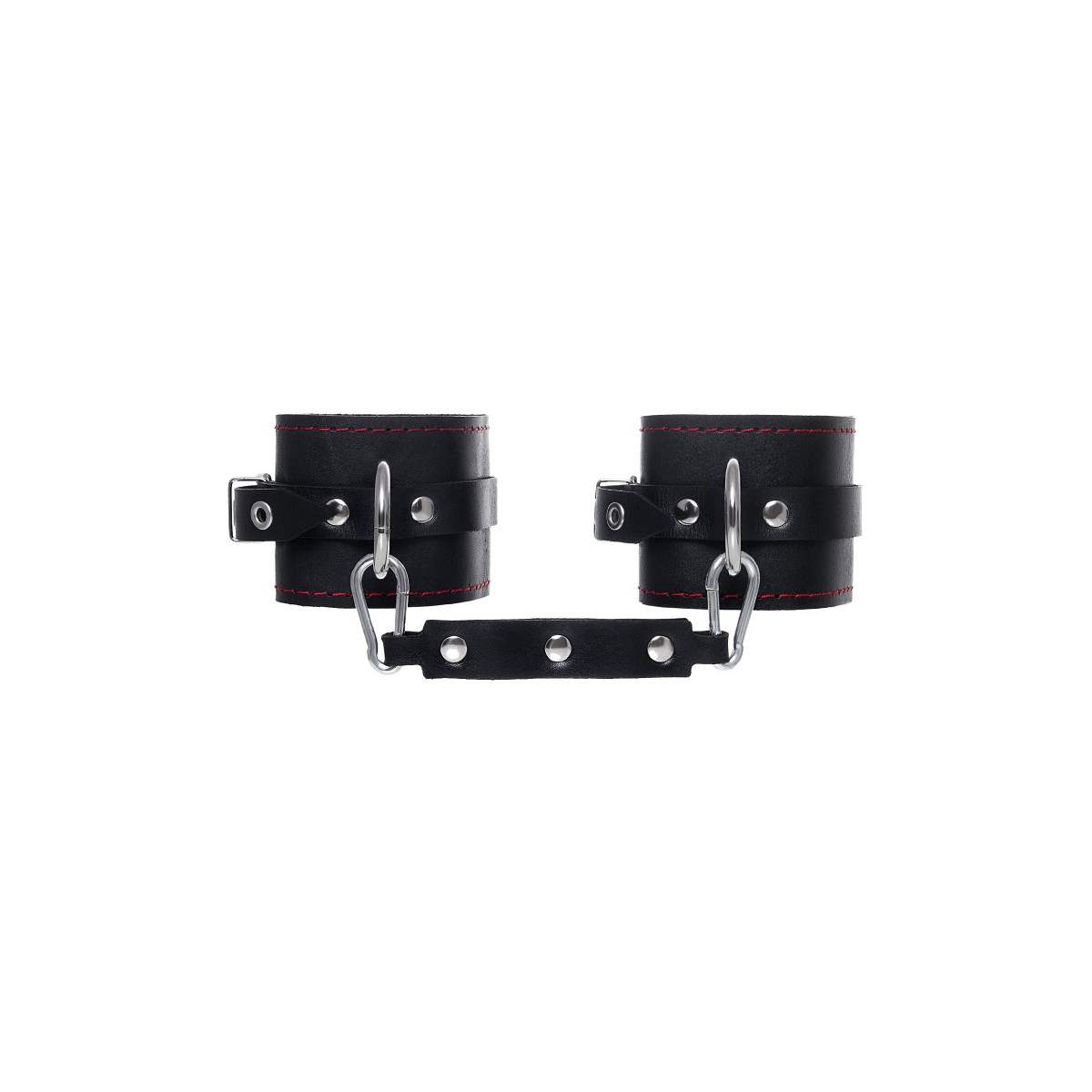 Эти однослойные кожаные оковы с контрастной строчкой красного цвета могут стать стильным аксессуаром, а могут послужить вашим целям по своему прямому назначению. Частичное обездвиживание и невозможность двигать руками или ногами дают вам полную власть над партнером – взрослые игры для взрослых. Наличие двух колец и карабинов, соединенных между собой кожаным ремешком, позволяет использовать изделие как раздельно – аксессуар-манжеты, так и как оковы для фиксации. К широким металлическим кольцам также можно присоединить и другие аксессуары при помощи карабинов. Благодаря универсальному размеру оковы могут использоваться и мужчинами, и женщинами. Размер легко регулируется с помощью металлических пряжек, органично вписывающихся в общий стиль. Длина манжет - 25 см, ширина - 6,5 см. Длина сцепки - 17 см.