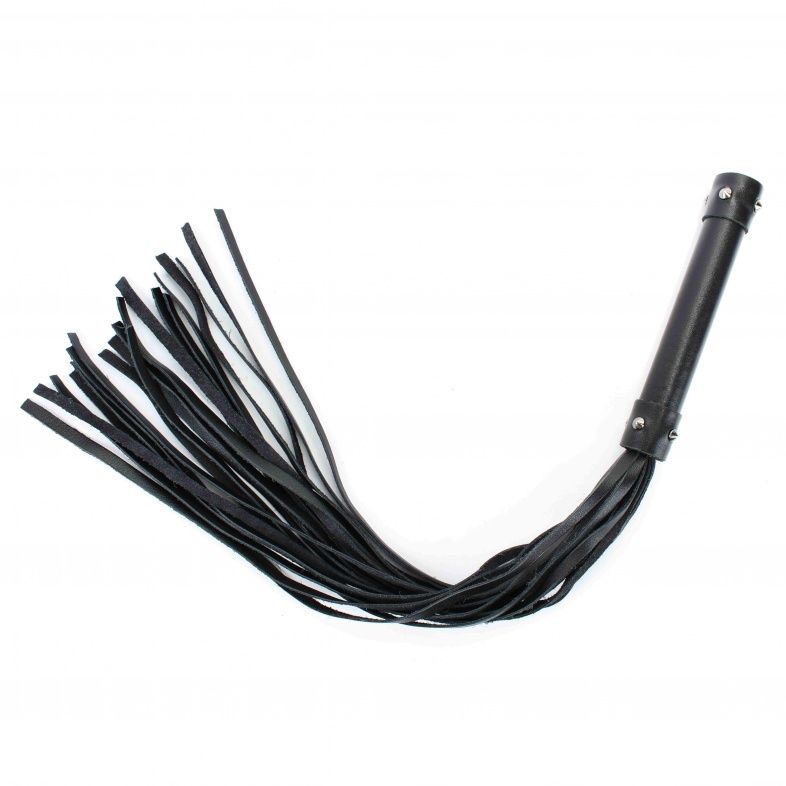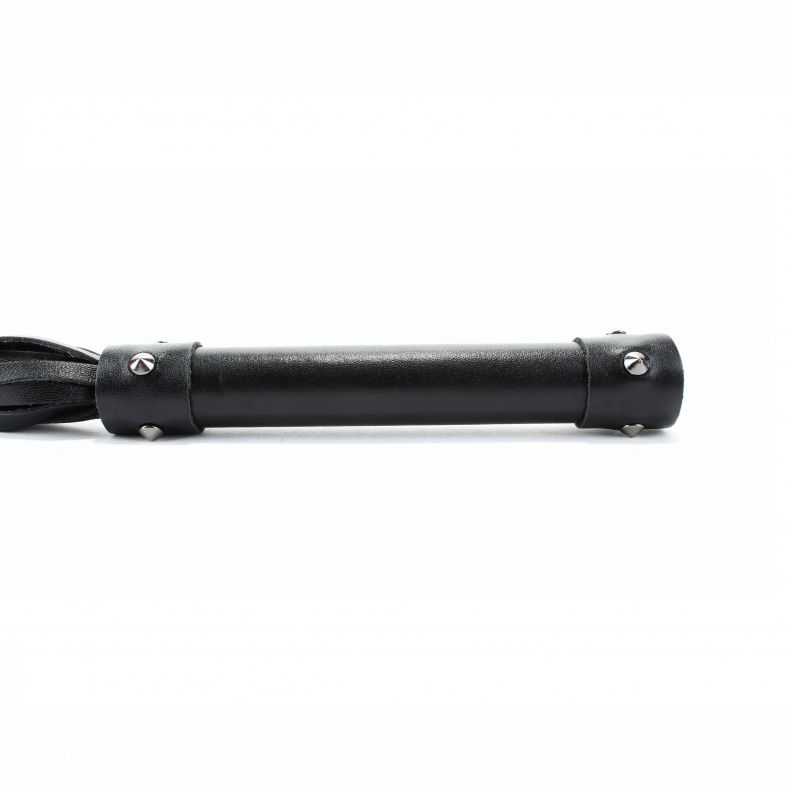 Плеть изготовлена из натуральной кожи, имеет 20 хвостов. Хвосты имеют вид лент. Украшена металлическими аксессуарами. Длина хвостов - 40 см.
