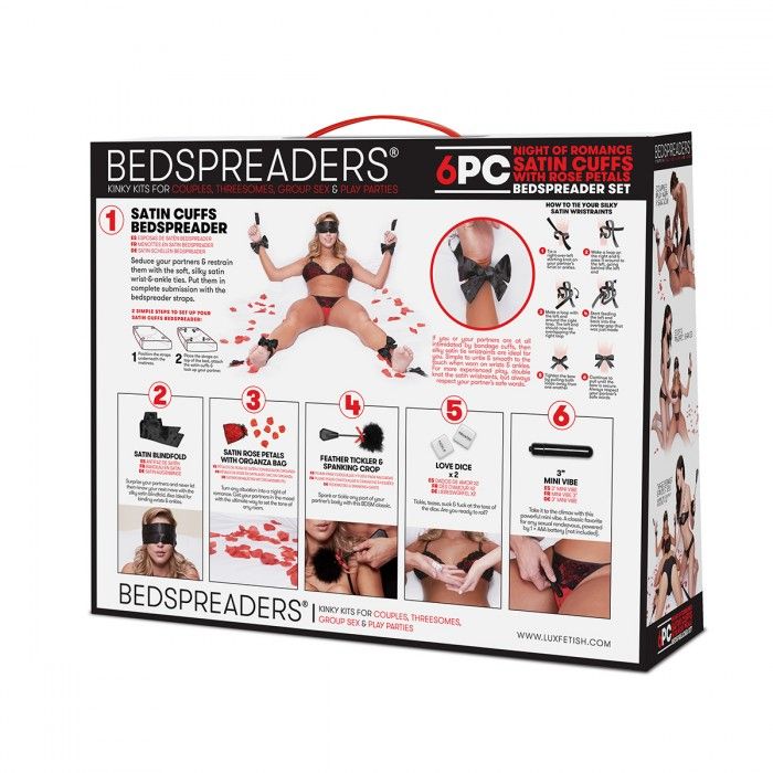 Приготовьтесь к романтической ночи с этим набором, среди которых есть все аксессуары, необходимые для чувственной близости с вашим партнером или группой. Атласные манжеты, лепестки роз, нежная повязка на глаза, перья для порки, ласки и щекотки, а также вибропуля и кубики для игры. Бросьте кости для возникновения идей прелюдии, пока вы исследуете фиксацию. Шелковистые лепестки роз идеально подходят для создания приятной обстановки. С таким большим количеством изящных аксессуаров на выбор у вас и ваших партнеров - скуке не место! В комплекте: 4 манжеты, лепестки роз, повязка на глаза, щекоталка, вибропуля, пэстисы, лента, кубики для игры, фиксация.