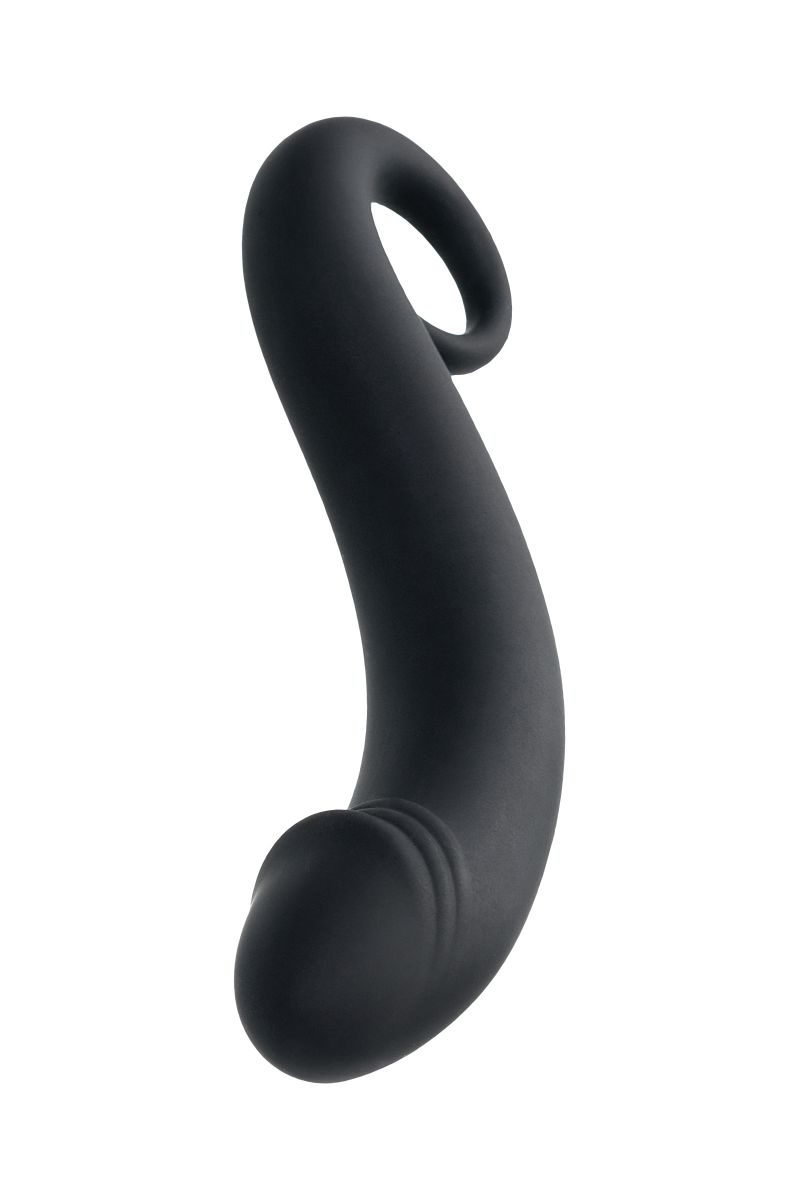 Это секс-игрушка для анальных игр и наслаждений. Изогнутая форма с имитацией головки пениса позволяет во-первых комфортно вводить ее в анус, а во-вторых является отличным способом воздействовать на мужскую точку P, вызывая усиленную волну оргазма. Ручка-кольцо дает возможность легко регулировать степень проникновения и уверенность в том, что игрушка не погрузится полностью внутрь. Рабочая длина - 15 см.