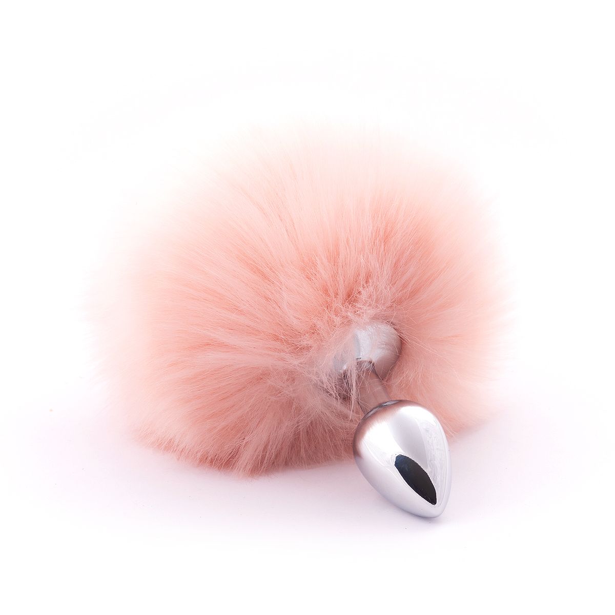 Серебристая анальная пробка с бежевым хвостиком. Искусственный эко-мех. Диаметр хвоста — 15 см.