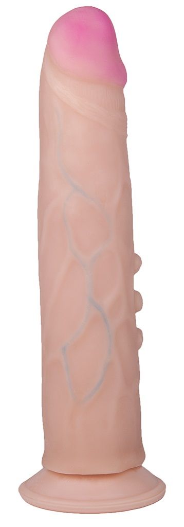 Популярная модель 8 дюймов. Среднего размера головка. Конусный корпус. Мягкие полусферы - клиторальные стимуляторы на удлиненном корпусе. Средне эластичная присоска.